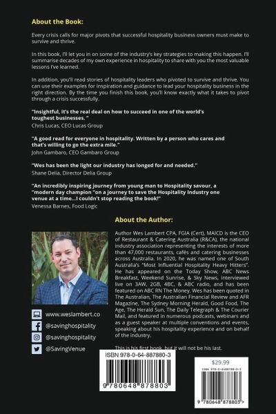 Every crisis calls for major pivots that successful hospitality business owners must make to survive and thrive. In this book, I'll let you in on some of the industry's key strategies to making this happen. I'll summarise decades of my own experience in hospitality to share with you the most valuable lessons I've learned. In addition, you'll read stories of hospitality leaders who pivoted to survive and thrive. You can use their examples for inspiration and guidance to lead your hospitality business in the right direction. By the time you finish this book, you'll know exactly what it takes to pivot through a crisis successfully. Don't wait until it's too late to pivot! Read this book TODAY and get started to ensure your hospitality business can survive and thrive through any crisis.