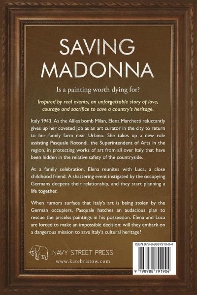 "We are all saving our country, can't you see? They might be fighting for our country's very existence as a free nation. But I am fighting for what comes afterwards. I want to fight to save the madonnas and the concertos and the marble statues and holy relics that are part of our country's very soul. Who are we, really, if we lose all that?" Inspired by real events, an unforgettable story of love, courage and sacrifice to save a country's cultural heritage. In the fall of 1943, the people of northern Italy are trying desperately to survive, caught up in the intense battles between partisans, fascist militia and the occupying Germans. Against this backdrop, based on actual events, SAVING MADONNA tells the story of Elena, a courageous young art curator, and Luca, a farmer trying to keep his family safe, who, together, risk everything to embark on a dangerous mission to help save Italy's cultural heritage.