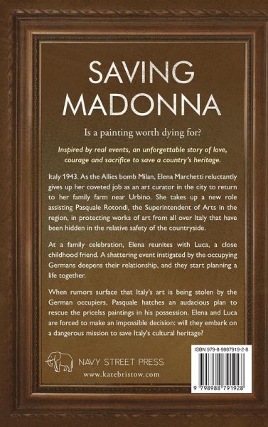 "We are all saving our country, can't you see? They might be fighting for our country's very existence as a free nation. But I am fighting for what comes afterwards. I want to fight to save the madonnas and the concertos and the marble statues and holy relics that are part of our country's very soul. Who are we, really, if we lose all that?" Inspired by real events, an unforgettable story of love, courage and sacrifice to save a country's cultural heritage. In the fall of 1943, the people of northern Italy are trying desperately to survive, caught up in the intense battles between partisans, fascist militia and the occupying Germans. Against this backdrop, based on actual events, SAVING MADONNA tells the story of Elena, a courageous young art curator, and Luca, a farmer trying to keep his family safe, who, together, risk everything to embark on a dangerous mission to help save Italy's cultural heritage.