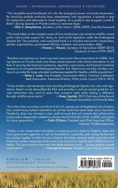 Winner, Independent Press Award - Conservation/Green, 2021 The only hope for successful conservation of America’s threatened, endangered, and at-risk wildlife is through voluntary, cooperative partnerships that focus on private land, where over 75% of at-risk species can be found. Private landowners form the bedrock of these partnerships, and they have a long history of rising to meet the challenge of conservation. But they can’t do it alone. This book is a guide for private landowners who want to conserve wildlife. Whether engaged in farming, ranching, forestry, mining, energy development, or another business, private working lands all have value as wildlife habitat, with the proper management and financial support. This book provides landowners and their partners with a roadmap to achieve conservation compatible with their financial and personal goals. This book introduces the art and language of land management planning as well as regulatory compliance with laws such as the Endangered Species Act of 1973. It categorizes and explains the tools used by wildlife professionals to implement conservation on private lands. Moreover it documents the multitude of federal, state, local, and private opportunities for landowners to find financial and technical assistance in managing wildlife, from working with a local NGO to accessing the $6 billion per year available through the federal Farm Bill.