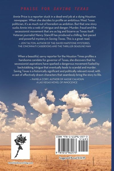 "A terrific brew of romp, murder, and intrigue." –Tony D’Souza, author of Mule "[Reporter] Annie Price seduces and leaves us breathless, begging for more." –Stefan Kiesbye, author of The Staked Plains Houston reporter Annie Price is looking for a career-defining story when she profiles Tom Marr, the state's first secessionist candidate for governor. But the big Texas story comes with more than she bargains for – a corrupt college president, a dangerous ex-CIA agent and a beautiful, deadly Peruvian assassin. Before long, Annie must grapple with two murders, political shenanigans and a love triangle that will test the limits of her ethics and her heart. Will she be able to get the story before her struggling newspaper implodes or her ruthless enemies get her? Author Nancy Stancill, formerly a reporter for the Houston Chronicle for 15 years, has created a crackling thriller that goes behind the headlines and deep into the gritty heart of journalism and politics in today's Texas.