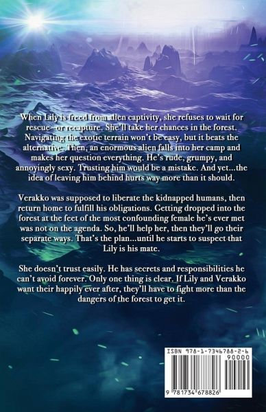 Her parents taught her to survive any wilderness on Earth. Too bad she's not on Earth anymore... When Lily is freed from alien captivity, she refuses to wait for rescue-or recapture. She'll take her chances in the forest. Navigating the exotic terrain won't be easy, but it beats the alternative. Then, an enormous alien falls into her camp and makes her question everything. He's rude, grumpy, and annoyingly sexy. Trusting him would be a mistake. And yet...the idea of leaving him behind hurts way more than it should. Verakko was supposed to liberate the kidnapped humans, then return home to fulfill his obligations. Getting dropped into the forest at the feet of the most confounding female he's ever met was not on the agenda. So, he'll help her, then they'll go their separate ways. That's the plan...until he starts to suspect that Lily is his mate. She doesn't trust easily. He has secrets and responsibilities he can't avoid forever. Only one thing is clear. If Lily and Verakko want their happily ever after, they'll have to fight more than the dangers of the forest to get it.