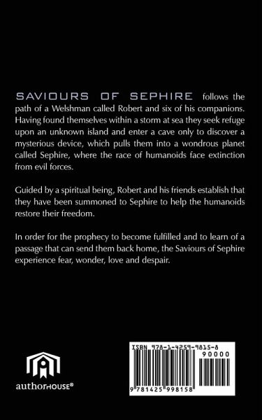 Saviours of Sephire follows the path of a Welshman called Robert and six of his companions. Having found themselves within a storm at sea they seek refuge upon an unknown island and enter a cave only to discover a mysterious device, which pulls them into a wondrous planet called Sephire, where the race of humanoids face extinction from evil forces. Guided by a spiritual being, Robert and his friends establish that they have been summoned to Sephire to help the humanoids restore their freedom. In order for the prophecy to become fulfilled and to learn of a passage that can send them back home, the Saviours of Sephire experience fear, wonder, love and despair.