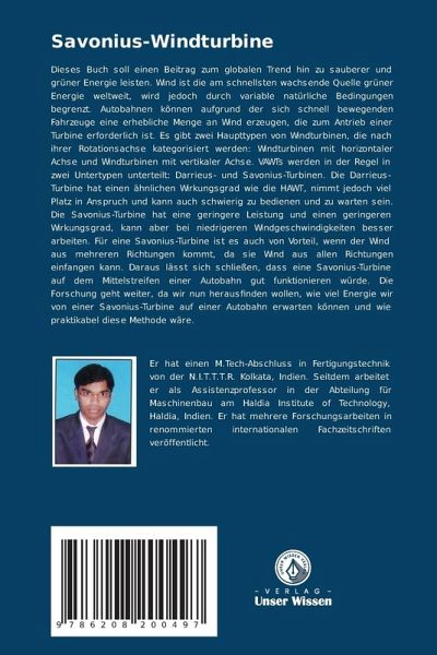 Dieses Buch soll einen Beitrag zum globalen Trend hin zu sauberer und grüner Energie leisten. Wind ist die am schnellsten wachsende Quelle grüner Energie weltweit, wird jedoch durch variable natürliche Bedingungen begrenzt. Autobahnen können aufgrund der sich schnell bewegenden Fahrzeuge eine erhebliche Menge an Wind erzeugen, die zum Antrieb einer Turbine erforderlich ist. Es gibt zwei Haupttypen von Windturbinen, die nach ihrer Rotationsachse kategorisiert werden: Windturbinen mit horizontaler Achse und Windturbinen mit vertikaler Achse. VAWTs werden in der Regel in zwei Untertypen unterteilt: Darrieus- und Savonius-Turbinen. Die Darrieus-Turbine hat einen ähnlichen Wirkungsgrad wie die HAWT, nimmt jedoch viel Platz in Anspruch und kann auch schwierig zu bedienen und zu warten sein. Die Savonius-Turbine hat eine geringere Leistung und einen geringeren Wirkungsgrad, kann aber bei niedrigeren Windgeschwindigkeiten besser arbeiten. Für eine Savonius-Turbine ist es auch von Vorteil, wenn der Wind aus mehreren Richtungen kommt, da sie Wind aus allen Richtungen einfangen kann. Daraus lässt sich schließen, dass eine Savonius-Turbine auf dem Mittelstreifen einer Autobahn gut funktionieren würde. Die Forschung geht weiter, da wir nun herausfinden wollen, wie viel Energie wir von einer Savonius-Turbine auf einer Autobahn erwarten können und wie praktikabel diese Methode wäre.