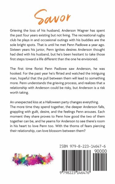 Grieving the loss of his husband, Anderson Wagner has spent the past four years existing but not living. The recreational rugby club he plays in and occasional outings with his buddies are the sole bright spots. That is until he met Penn Padlowe a year ago. Sixteen years his junior, Penn ignites desires Anderson thought had died with his husband, but he's been hesitant to take those first steps toward a life different than the one he envisioned. The first time florist Penn Padlowe saw Anderson, he was hooked. For the past year he's flirted and watched the intriguing man, hopeful that the pull between them will lead to something more. Penn understands the grieving process, and realizes that a relationship with Anderson could be risky, but Anderson is a risk worth taking. An unexpected kiss at a Halloween party changes everything. The more time they spend together, the deeper Anderson falls, grappling with guilt, desire, and the feelings Penn arouses. Each moment they share proves to Penn how good the two of them together can be, and he yearns for Anderson to see there's room in his heart to love Penn too. With the thorns of fears piercing their relationship, can love blossom between them?