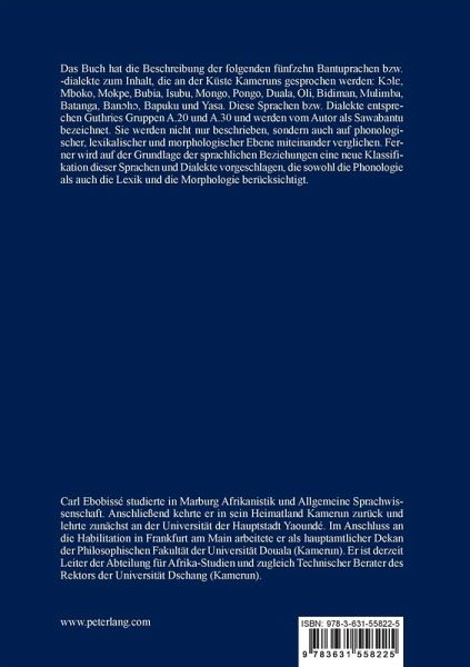 Das Buch hat die Beschreibung der folgenden fünfzehn Bantusprachen bzw. -dialekte zum Inhalt, die an der Küste Kameruns gesprochen werden: K l , Mboko, Mokpe, Bubia, Isubu, Mongo, Pongo, Duala, Oli, Bidiman, Mulimba, Batanga, Ban h , Bapuku und Yasa. Diese Sprachen bzw. Dialekte entsprechen Guthries Gruppen A.20 und A.30 und werden vom Autor als Sawabantu bezeichnet. Sie werden nicht nur beschrieben, sondern auch auf phonologischer, lexikalischer und morphologischer Ebene miteinander verglichen. Ferner wird auf der Grundlage der sprachlichen Beziehungen eine neue Klassifikation dieser Sprachen und Dialekte vorgeschlagen, die sowohl die Phonologie als auch die Lexik und die Morphologie berücksichtigt.