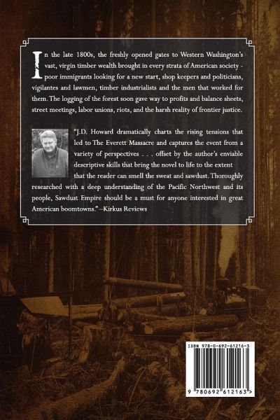 "Set in a sawmill town in the Pacific Northwest at the turn of the 20th century, this historical novel dramatically charts rising tensions that can only lead to disaster. The boom and bust cycle of Everett’s sawdust economy turned the town into a place of incredible extremes," explains Howard in his historical note that prefaces this book. In the early 1900s, Everett, Washington, is the focus of the timber industry in the Northwest. Such is the demand for labor that it becomes widely known as a location where an unskilled worker can easily find a job. Wave after wave of newcomers arrive in hopes of securing a wage. As a consequence, the area’s demographics alter radically and rapidly, transforming Everett into a hard-drinking, volatile town. The author captures this unrest from a variety of perspectives: characters range from the wealthy, conniving mill owner, Luther MacCullock, to the underpaid laborers toiling in the forest. The novel opens with the workers striking and observes the extremes to which MacCullock will go to control his employees. The sense of agitation slowly builds, heightened further by the arrival of the Wobblies, or Industrial Workers of the World, a radical labor union. The engaging novel boasts an ambitiously broad character list, which means that no individual is fully developed. This minor criticism is offset by the author’s enviable descriptive skills that bring Everett to life to the extent that a reader can smell the sweat and sawdust: "With every ax swing they bit deep into the yellow-white wood. Large chips of fir fell to the forest floor as the cool morning air filled their lungs. After four hours the undercut was done, and a breeze picked up. The crowns of the trees rustled and swayed." Thoroughly researched with a deep understanding of the Pacific Northwest and its people, this novel should be a must for anyone interested in the great American boomtowns. A tale about the timber industry as rich and textured as the landscape it surveys." - Kirkus Reviews