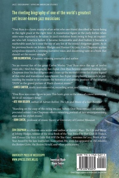 Don Byas (1913-1972) may be lesser known than the counterparts he played with--Count Basie, Duke Ellington, and Dizzy Gillespie, among others--but he was an enigma. He never stayed with a band for long, and eventually went solo partly to make more money and partly due to his inability to work with bandleaders. Often drinking to excess, alcohol fueled his sometimes-erratic behavior on and off the bandstand. He went through at least thirteen different groups in fifteen years of professional play before leaving for Europe in 1946. Despite his fractious personality, in Europe he found peace and contentment as a family man in the Netherlands, where he lived out his days with his second wife and their four children. He learned at least seven languages during his years in Europe, and on traveling to a new country could pick up a few phrases in short order, soon speaking to the locals and even composing songs in their native tongue. In Sax Expat: Don Byas, author Con Chapman argues that Byas's relative obscurity arises from his choice to live in Europe, where he missed out on recording opportunities and exposure in the US that would have made him renowned and wealthier. His numerous achievements, including his solo on Count Basie's "Harvard Blues," which is a model of restrained invention; his interpretation of the sentimental movie theme "Laura"; and his duets with bassist Slam Stewart were included in the Smithsonian Collection of Classic Jazz and secured Byas's place in jazz history. This biography brings to life an amazing jazz story.