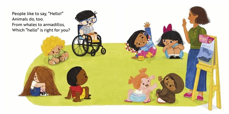 It's not just people who say "hello”—animals do, too! In this playful story, animals from all over the world show off the unique ways they say “hello.” From belugas’ fin shakes and tongue clicks to fiddler crabs’ waving claws to armadillos’ unrolling to say “hi,” these clever, creative animal greetings encourage young readers to emulate each animals’ gentle movements and to experiment with different ways of greeting one another. This inviting, colorfully illustrated collection of ways to say hello fosters play and curiosity about the natural world while alleviating children’s anxiety about greeting new people. Every Nosy Crow picture book comes with a free Stories Aloud audio recording—just scan the QR code and listen along!