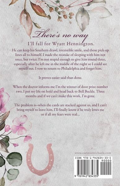 There's no way I'll fall for Wyatt Hennington. He can keep his Southern drawl, irresistible smile, and those pick-up lines all to himself. I made the mistake of sleeping with him not once, but twice. I'm not stupid enough to give him round three, especially after he left me in the middle of the night so I could see myself out. I vow to return to Philadelphia and forget him. It proves easier said than done. When the doctor informs me I'm the winner of door prize number two, I put my life on hold and head back to Bell Buckle. Three months and if we can't make this work, I'm gone. The problem is-when the cards are stacked against us, and I can't bring myself to leave him, I'll finally know if he truly loves me or if all my fears were real...