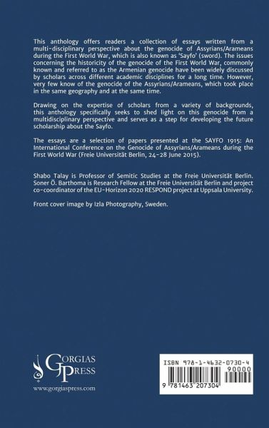 This anthology offers readers a collection of essays written from a multi-disciplinary perspective about the genocide of Assyrians/Aramaeans during the First World War, which is also known as ‘Sayfo’ (sword). The issues concerning the historicity of the genocide of the First World War, commonly known and referred to as the Armenian genocide have been widely discussed by scholars across different academic disciplines for a long time. However, very few know of the genocide of the Assyrians/Aramaeans, which took place in the same geography and at the same time. Drawing on the expertise of scholars from a variety of backgrounds, this anthology specifically seeks to shed light on this genocide from a multidisciplinary perspective and serve as a step for developing the future scholarship about the Sayfo. The essays are selection of papers presented at the SAYFO 1915: An International Conference on the Genocide of Assyrians/Aramaeans during the First World War (Freie Universität Berlin, 24-28 June 2015).