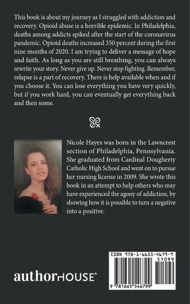 This book is about my journey as I struggled with addiction and recovery. Opioid abuse is a horrible epidemic. In Philadelphia, deaths among addicts spiked after the start of the coronavirus pandemic. Opioid deaths increased 350 percent during the first nine months of 2020. I am trying to deliver a message of hope and faith. As long as you are still breathing, you can always rewrite your story. Never give up. Never stop fighting. Remember, relapse is a part of recovery. There is help available when and if you choose it. You can lose everything you have very quickly, but if you work hard, you can eventually get everything back and then some.