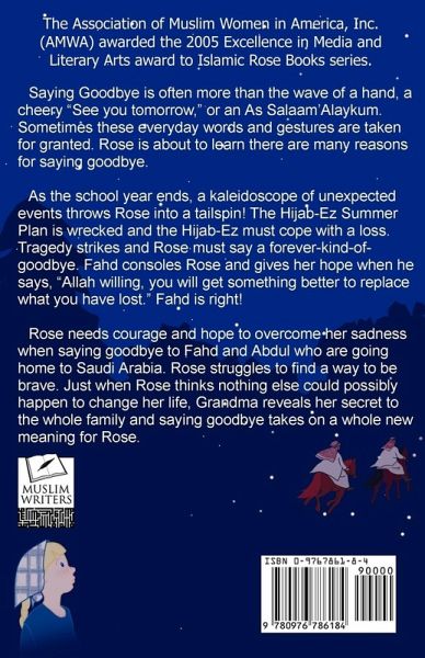 Book Description Saying Goodbye is often more than the wave of a hand, a cheery "See you tomorrow," or an As Salaam'Alaykum. Sometimes these everyday words and gestures are taken for granted. Rose is about to learn there are many reasons for saying goodbye. As the school year ends, a kaleidoscope of unexpected events throws Rose into a tailspin! The Hijab-Ez Summer Plan is wrecked and the Hijab-Ez must cope with a loss. Tragedy strikes and Rose must say a forever-kind-of-goodbye. Fahd consoles Rose and gives her hope when he says, "Allah willing, you will get something better to replace what you have lost." Fahd is right! Rose needs courage and hope to overcome her sadness when saying goodbye to Fahd and Abdul who are going home to Saudi Arabia. Rose struggles to find a way to be brave. Just when Rose thinks nothing else could possibly happen to change her life, Grandma reveals her secret to the whole family and saying goodbye takes on a whole new meaning for Rose. The Association of Muslim Women in America, Inc. (AMWA) selected Linda D. Delgado to receive their Excellence in Media, Literary Arts award. The award is based on her work as author of the children's book series, "Islamic Rose Books". Saying Goodbye is the fourth book in this series.