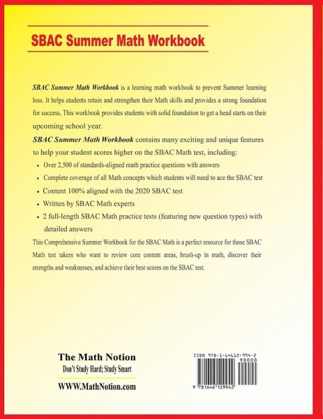 Prepare for the SBAC Math test with a perfect workbook! SBAC Summer Math Workbook is a learning math workbook to prevent Summer learning loss. It helps students retain and strengthen their Math skills and provides a strong foundation for success. This workbook provides students with solid foundation to get a head starts on their upcoming school year. SBAC Summer Math Workbook is designed by top test prep experts to help students prepare for the SBAC Math test. It provides test-takers with an in-depth focus on the math section of the test, helping them master the essential math skills that…mehr