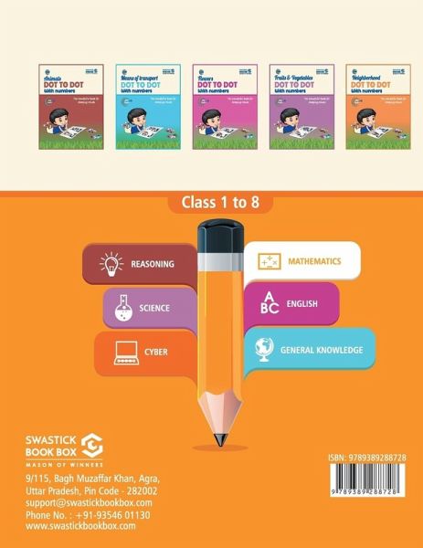 SBB Dot to Dot Activity Book for kindergarten helps students/kids/children to improve: 1 - Motor writing skills; 2 - Hand and eye coordination; 3 - Decision-making skills; 4 - Observation skills; 5 - Creative skills; 6 - Thinking Skills; 7 - Pencil Control. All these skills help and promote logical brain development. The book is also an excellent first step to get kids prepared for school.