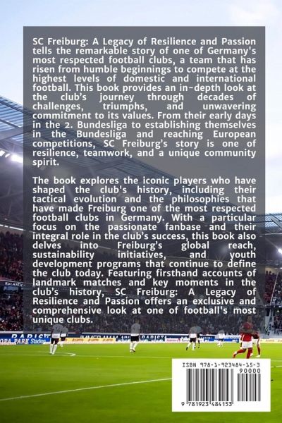SC Freiburg: A Legacy of Resilience and Passion tells the remarkable story of one of Germany's most respected football clubs, a team that has risen from humble beginnings to compete at the highest levels of domestic and international football. This book provides an in-depth look at the club's journey through decades of challenges, triumphs, and unwavering commitment to its values. From their early days in the 2. Bundesliga to establishing themselves in the Bundesliga and reaching European competitions, SC Freiburg's story is one of resilience, teamwork, and a unique community spirit. The book explores the iconic players who have shaped the club's history, including their tactical evolution and the philosophies that have made Freiburg one of the most respected football clubs in Germany. With a particular focus on the passionate fanbase and their integral role in the club's success, this book also delves into Freiburg's global reach, sustainability initiatives, and youth development programs that continue to define the club today. Featuring firsthand accounts of landmark matches and key moments in the club's history, SC Freiburg: A Legacy of Resilience and Passion offers an exclusive and comprehensive look at one of football's most unique clubs.