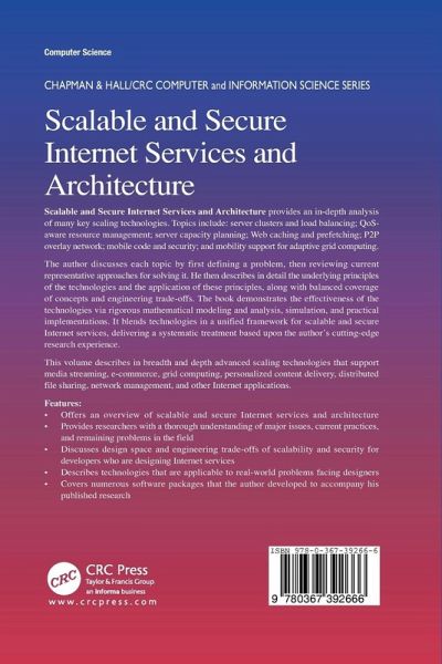 Scalable and Secure Internet Services and Architecture provides an in-depth analysis of many key scaling technologies. The book demonstrates the effectiveness of the technologies via mathematical modeling and analysis, simulation, and practical implementations. The text blends technologies in a unified framework for scalable and secure Internet services, delivering a systematic treatment based upon the author's research. The book tackles each topic by first defining a problem, then reviewing representative approaches for solving it. The author then describes the underlying principles of the technologies and the application of these principles, along with balanced coverage of concepts and engineering trade-offs.