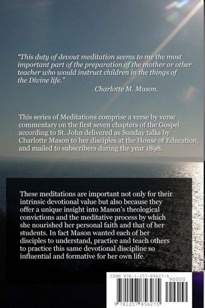 This series of Meditations comprise a verse by verse commentary on the first seven chapters of the Gospel according to St. John delivered as Sunday talks by Charlotte Mason to her disciples at "Scale How", The House of Education in Ambleside, and mailed weekly to subscribers during the year 1898 and later published in "The Parents' Review". This edifying collection is also an indispensable source for any one interested in exploring more deeply Mason's religious convictions.