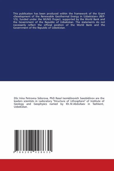 This publication has been produced within the framework of the Grant «Development of the Renewable Geothermal Energy in Uzbekistan» (REP-1/5), funded under the MUNIS Project, supported by the World Bank and the Government of the Republic of Uzbekistan. The statements do not necessarily reflect the official position of the World Bank and the Government of the Republic of Uzbekistan.