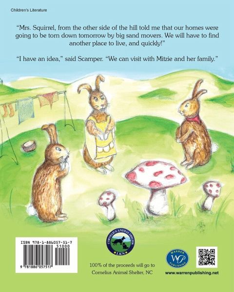 "Mrs. Squirrel, from the other side of the hill, told me that our homes were going to be turn down tomorrow by big sand movers. We will have to find another place to live, and quickly." "I have an idea," said Scamper. "We can visit with Mitzie and her family."