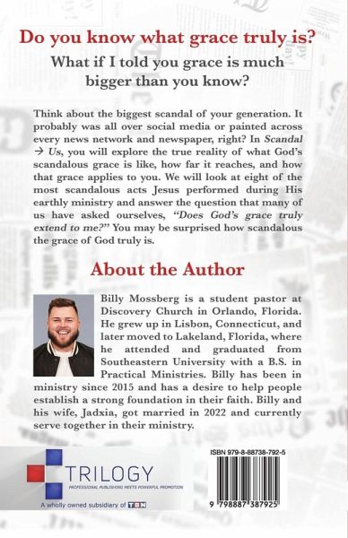 Do you know what grace truly is? What if I told you grace is much bigger than you know? Think about the biggest scandal of your generation. It probably was all over social media or painted across every news network and newspaper, right? In Scandal ¿ Us, you will explore the true reality of what God's scandalous grace is like, how far it reaches, and how that grace applies to you. We will look at eight of the most scandalous acts Jesus performed during His earthly ministry and answer the question that many of us have asked ourselves, "Does God's grace truly extend to me?" You may be surprised how scandalous the grace of God truly is.