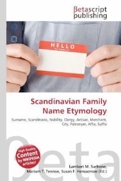 Please note that the content of this book primarily consists of articles available from Wikipedia or other free sources online. Heritable family names were generally adopted rather late within Scandinavia. Nobility were the first to take names that would be passed on from one generation to the next. Later, clergy, artisans and merchants in cities took heritable names. Familily names were used still used together with primary patronyms (father''s name plus an affix denoting relationship), which were used by all social classes. This meant that most families until modern times did not have an actual family surnames as we know them today. Scandinavian patronyms were generally derived from the father''s given name with the addition of a suffix meaning ''son'' or ''daughter''. This naming tradition remained commonly used throughout the Scandinavian countries at the time of surname formation. The patronymic suffix -sen has also been in use in the area formerly speaking Middle Low German. Examples include names as Jansen, Thiessen, Thyssen and Hensen in Germany and Klaassen and Nelissen in the Netherlands.