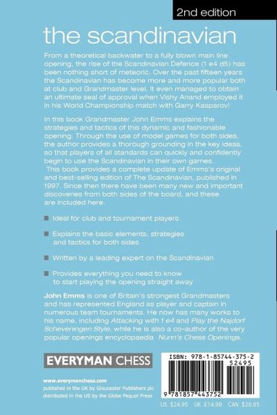 From a theoretical backwater to a fully blown main line opening, the rise of the Scandinavian Defence (1 e4 d5) has been nothing short of meteoric. Over the past fifteen years the Scandinavian has become more and more popular both at club and Grandmaster level. It even managed to obtain an ultimate seal of approval when Vishy Anand employed it in his World Championship match with Garry Kasparov! In this book Grandmaster John Emms explains the strategies and tactics of this dynamic and fashionable opening. Through the use of model games for both sides, the author provides a thorough grounding in the key ideas, so that players of all standards can quickly and confidently begin to use the Scandinavian in their own games. This book provides a complete update of Emms's original and best-selling edition of The Scandinavian, published in 1997. Since then there have been many new and important discoveries from both sides of the board, and these are included here. *Ideal for club and tournament players *Explains the basic elements, strategies and tactics for both sides *Written by a leading expert on the Scandinavian *Provides everything you need to know to start playing the opening straightaway