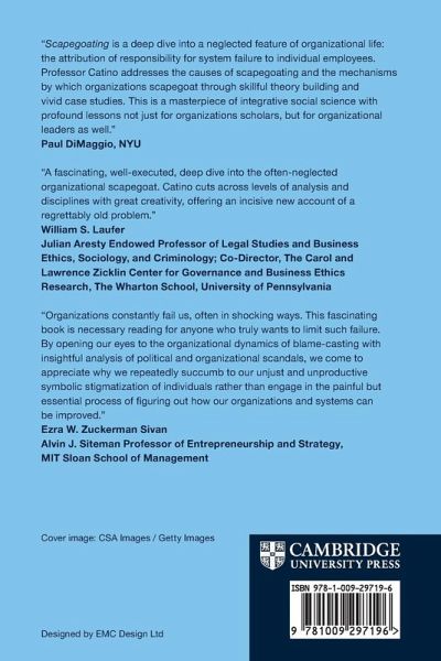 Catino reveals the processes and mechanisms involved in the formation of scapegoats in organizations. In analysing the concept of the â organizational scapegoat,â this book gives a fresh perspective on recent incidents from around the world, including the Costa Concordia shipwreck.