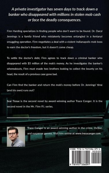 A private investigator has seven days to track down a banker who disappeared with millions in stolen mob cash or face the deadly consequences. A vigilante justice P.I. series. Finn Harding specializes in finding people who don't want to be found. Dr. Daryl Jennings is a family friend who mistakenly becomes entangled in a fentanyl smuggling operation. Finn negotiates a deal with a violent Indianapolis mob boss to earn the doctor's freedom, but it doesn't come cheap. To settle the doctor's debt, Finn agrees to track down a criminal banker who disappeared with $5 million of the mob's money. As he investigates the banker's whereabouts, Finn must evade two brothers looking to collect the bounty on his head, the result of a previous case gone bad. Can Finn find the banker and return the mob's money before Dr. Jennings' time (and his own) runs out? Scar Tissue is the second novel by award-winning author Trace Conger. It is the second novel in the Mr. Finn P.I. series.