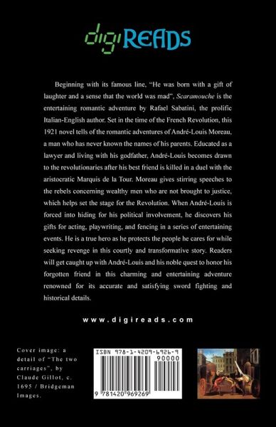 Beginning with its famous line, "He was born with a gift of laughter and a sense that the world was mad", "Scaramouche" is the entertaining romantic adventure by Rafael Sabitini, the prolific Italian-English author. Set in the time of the French Revolution, this 1921 novel tells of the romantic adventures of André-Louis Moreau, a man who has never known the names of his parents. Educated as a lawyer and living with his godfather, André-Louis becomes drawn to the revolutionaries after his best friend is killed in a duel with the aristocratic Marquis de la Tour. Moreau gives stirring speeches to the rebels concerning wealthy men who are not brought to justice, which helps set the stage for the Revolution. When André-Louis is forced into hiding for his political involvement, he discovers his gifts for acting, playwriting, and fencing in a series of entertaining events. He is a true hero as he protects the people he cares for while seeking revenge in this courtly and transformative story. Readers will get caught up with André-Louis and his noble quest to honor his forgotten friend in this charming and entertaining adventure renowned for its accurate and satisfying sword fighting and historical details. This edition is printed on premium acid-free paper.