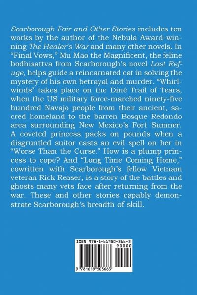 Scarborough Fair and Other Stories includes ten works by the author of the Nebula Award-winning The Healer's War and many other novels. In "Final Vows," Mu Mao the Magnificent, the feline bodhisattva from Scarborough's novel Last Refuge, helps guide a reincarnated cat in solving the mystery of his own betrayal and murder. "Whirlwinds" takes place on the Diné Trail of Tears, when the US military force-marched ninety-five hundred Navajo people from their ancient, sacred homeland to the barren Bosque Redondo area surrounding New Mexico's Fort Sumner. A coveted princess packs on pounds when a disgruntled suitor casts an evil spell on her in "Worse Than the Curse." How is a plump princess to cope? And "Long Time Coming Home," cowritten with Scarborough's fellow Vietnam veteran Rick Reaser, is a story of the battles and ghosts many vets face after returning from the war. These and other stories capably demonstrate Scarborough's breadth of skill.