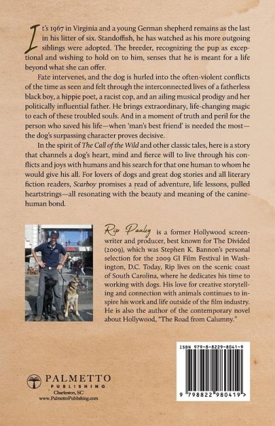 Experience the world through the eyes of an incredible German shepherd in his journey through the lives of four very different souls in culturally-torn late 1960s America. In 1967, a young German shepherd remains as the last in his litter of six. Not as outgoing as the rest of the pack, he watches imperiously as his brothers and sisters are adopted. Opal, the Virginia farm owner who'd bred him, cannot decide whether or not to keep this exceptional dog. Realizing her own limitations of care, she finally releases him to Radcliffe student Tory who, traveling with her boyfriend Jeremy, feels a powerful kinship with the pup. But the kinship proves an illusion and the dog is soon abandoned to the stormy urban conflicts of the 60s. In his tumultuous journey through the lives of a racist cop, a fatherless black boy, and an ailing musical prodigy and her politically influential father, the dog's indomitable resilience not only keeps him alive but enables him to bring extraordinary magic to these different lives. Finally, in a moment of mortal peril for the one person who'd saved his life, the dog fulfills what it means to be 'man's best friend.' For dog lovers, serious readers, politically engaged conservatives, women, mothers, and literary fiction readers, Scarboy promises a read of adventure, life lessons, pulled heartstrings, and the beauty of a canine relationship.