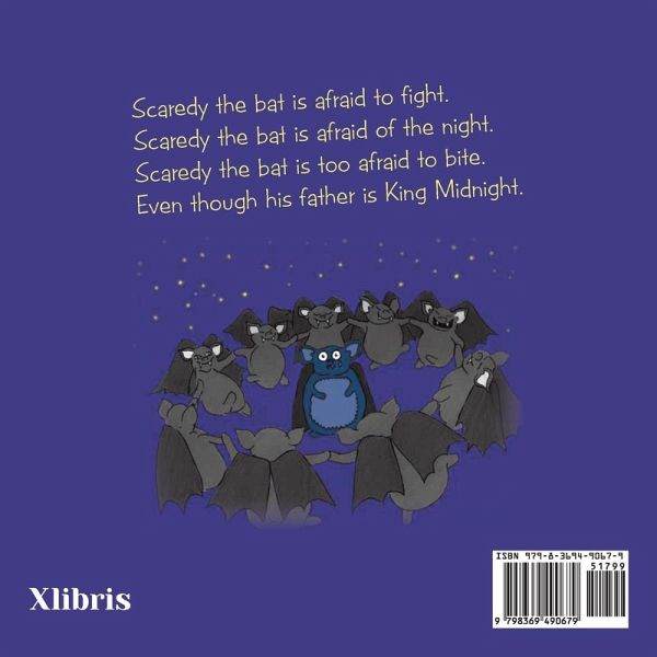 Scaredy the bat is afraid to fight. Scaredy the bat is afraid of the night. Scaredy the bat is too afraid to bite. Even though his father is King Midnight.