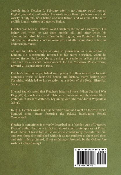 Joseph Smith Fletcher (7 February 1863 - 30 January 1935) was an English journalist and author. He wrote more than 230 books on a wide variety of subjects, both fiction and non-fiction, and was one of the most prolific English writers of detective fiction. Fletcher was born in Halifax, West Yorkshire, the son of a clergyman. His father died when he was eight months old, and after which his grandmother raised him on a farm in Darrington, near Pontefract. He was educated at Silcoates School in Wakefield, and after some study of law, he became a journalist. At age 20, Fletcher began working in journalism, as a sub-editor in London. He subsequently returned to his native Yorkshire, where he worked first on the Leeds Mercury using the pseudonym A Son of the Soil, and then as a special correspondent for the Yorkshire Post covering Edward VII's coronation in 1902. Fletcher's first books published were poetry. He then moved on to write numerous works of historical fiction and history, many dealing with Yorkshire, which led to his selection as a fellow of the Royal Historical Society. Michael Sadleir stated that Fletcher's historical novel, When Charles I Was King (1892), was his best work. Fletcher wrote several novels of rural life in imitation of Richard Jefferies, beginning with The Wonderful Wapentake (1894). In 1914, Fletcher wrote his first detective novel and went on to write over a hundred more, many featuring the private investigator Ronald Camberwell. Fletcher is sometimes incorrectly described as a "Golden Age of Detective Fiction" author, but he is in fact an almost exact contemporary of Conan Doyle. Most of his detective fiction works considerably pre-date that era, and even those few published within it do not conform to the closed form and strict rules professed, if not unfailingly observed, by the Golden Age writers. (wikipedia.org)