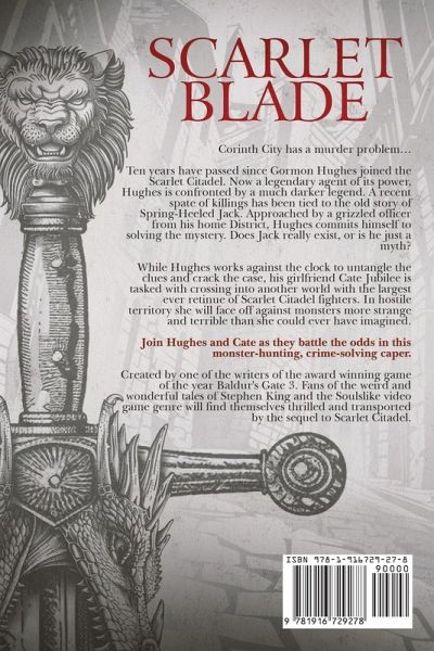 Corinth City has a murder problem... Ten years have passed since Gormon Hughes joined the Scarlet Citadel. Now a legendary agent of its power, Hughes is confronted by a much darker legend. A recent spate of killings has been tied to the old story of Spring-Heeled Jack. Approached by a grizzled officer from his home District, Hughes commits himself to solving the mystery. Does Jack really exist, or is he just a myth? While Hughes works against the clock to untangle the clues and crack the case, his girlfriend Cate Jubilee is tasked with crossing into another world with the largest ever retinue of Scarlet Citadel fighters. In hostile territory she will face off against monsters more strange and terrible than she could ever have imagined. Join Hughes and Cate as they battle the odds in this monster-hunting, crime-solving caper. Created by one of the writers of the award winning game of the year Baldur's Gate 3. Fans of the weird and wonderful tales of Stephen King and the Soulslike video game genre will find themselves thrilled and transported by the sequel to Scarlet Citadel. *Trigger warning this book contains description and trauma of child loss*