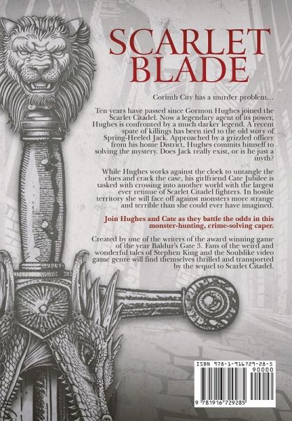 Corinth City has a murder problem... Ten years have passed since Gormon Hughes joined the Scarlet Citadel. Now a legendary agent of its power, Hughes is confronted by a much darker legend. A recent spate of killings has been tied to the old story of Spring-Heeled Jack. Approached by a grizzled officer from his home District, Hughes commits himself to solving the mystery. Does Jack really exist, or is he just a myth? While Hughes works against the clock to untangle the clues and crack the case, his girlfriend Cate Jubilee is tasked with crossing into another world with the largest ever retinue of Scarlet Citadel fighters. In hostile territory she will face off against monsters more strange and terrible than she could ever have imagined. Join Hughes and Cate as they battle the odds in this monster-hunting, crime-solving caper. Created by one of the writers of the award winning game of the year Baldur's Gate 3. Fans of the weird and wonderful tales of Stephen King and the Soulslike video game genre will find themselves thrilled and transported by the sequel to Scarlet Citadel. *Trigger warning this book contains description and trauma of child loss*