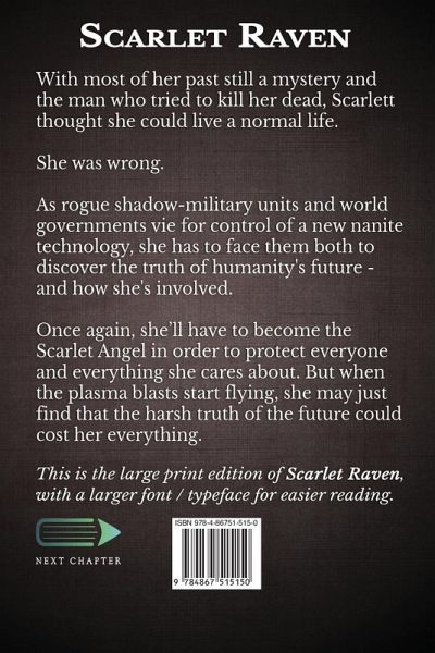 With most of her past still a mystery and the man who tried to kill her dead, Scarlett thought she could live a normal life. She was wrong. As rogue shadow-military units and world governments vie for control of a new nanite technology, she has to face them both to discover the truth of humanity's future - and how she's involved. Once again, she'll have to become the Scarlet Angel in order to protect everyone and everything she cares about. But when the plasma blasts start flying, she may just find that the harsh truth of the future could cost her everything. This is the large print edition of Scarlet Raven, with a larger font / typeface for easier reading.