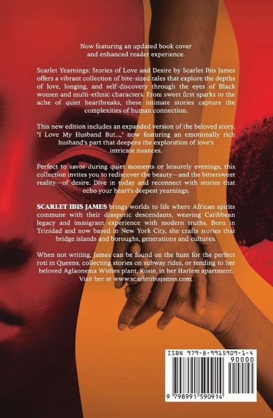 SCARLET YEARNINGS: Stories of Love and Desire Finalist for the 2025 American Legacy Book Awards in the Multicultural Fiction category! Winner of 2025 International Impact Book Award, Short Story Collection Finalist for the 2025 American Legacy Book Award, Multicultural Fiction Five-Star Reviews from Readers' Favorite Book Awards Twelve thought-provoking tales that explore love's emotional landscapes, where deep connection and heartfelt yearning take center stage, without explicit content. In this captivating collection, Scarlet Ibis James weaves emotionally rich stories of longing, vulnerability, and human connection that resonate long after the final page. Each tale offers a tender glimpse into the complex journey of the heart: - A woman reconnects with a childhood pen pal through mysterious letters, awakening something otherworldly - A doorman silently yearns for a resident in his building, their lives separated by invisible barriers - Former lovers cross paths on a crowded subway, stirring embers of what once was - A marriage counseling session reveals the unexpected price of choosing comfort over passion Critics praise James' "beautifully crafted journey through the many facets of love" and her thoughtful exploration of desire's "messy, complicated side." These stories celebrate emotional intimacy and the profound power of connection, featuring diverse characters as they navigate universal feelings. Perfect for readers who appreciate thoughtful, PG-rated fiction that explores the courage it takes to love and be loved. Each story stands alone-ideal for savoring between life's busy moments or enjoying in a single, reflective evening. Discover the yearnings hidden in your own heart with this emotionally resonant collection that focuses on the heart and mind rather than the bedroom.