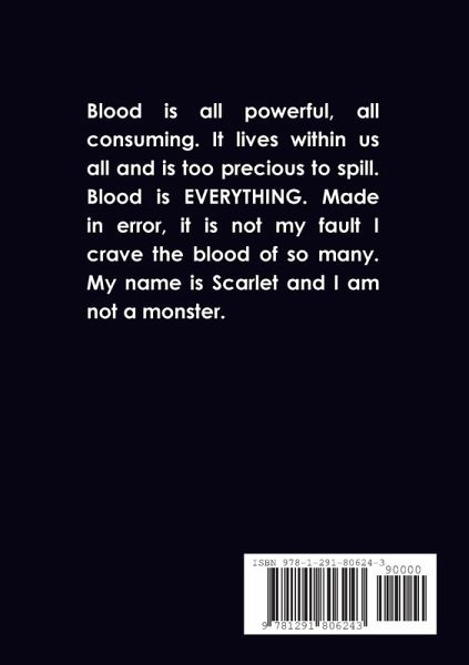 Blood is all powerful, all consuming. It lives within us all and is too precious to spill. Blood is EVERYTHING. Made in error, it is not my fault I crave the blood of so many. My name is Scarlet and I am not a monster.