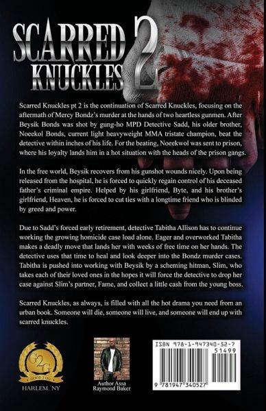 Scarred Knuckles pt 2 is the continuation of Scarred Knuckles, focusing on the aftermath of Mercy Bondz’s murder at the hands of two heartless gunmen. After Beysik Bonds was shot by gung-ho MPD Detective Sadd, his older brother, Noeekol Bonds, current light heavyweight MMA tristate champion, beat the detective within inches of his life. For the beating, Noeekwol was sent to prison, where his loyalty lands him in a hot situation with the heads of the prison gangs. In the free world, Beysik recovers from his gunshot wounds nicely. Upon being released from the hospital, he is forced to quickly regain control of his deceased father’s criminal empire. Helped by his girlfriend, Byte, and his brother’s girlfriend, Heaven, he is forced to cut ties with a longtime friend who is blinded by greed and power. Due to Sadd’s forced early retirement, detective Tabitha Allison has to continue working the growing homicide case load alone. Eager and overworked Tabitha makes a deadly move that lands her with weeks of free time on her hands. The detective uses that time to heal and look deeper into the Bondz murder cases. Tabitha is pushed into working with Beysik by a scheming hitman, Slim, who takes each of their loved ones in the hopes it will force the detective to drop her case against Slim’s partner, Fame, and collect a little cash from the young boss. Scarred Faces, as always, is filled with all the hot drama you need from an urban book. Someone will die, someone will live, and someone will end up with scarred faces.