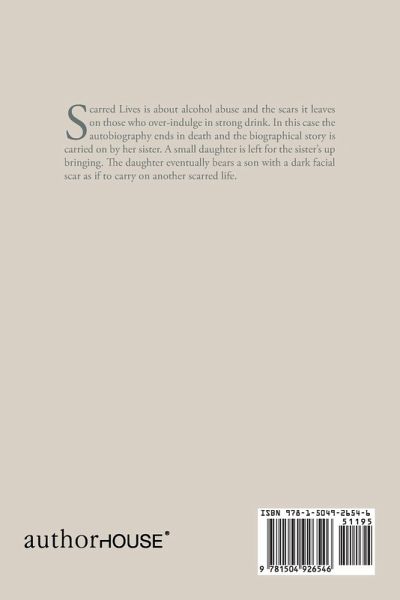 Scarred Lives is about alcohol abuse and the scars it leaves on those who over-indulge in strong drink. In this case the autobiography ends in death and the biographical story is carried on by her sister. A small daughter is left for the sister's up bringing. The daughter eventually bears a son with a dark facial scar as if to carry on another scarred life.