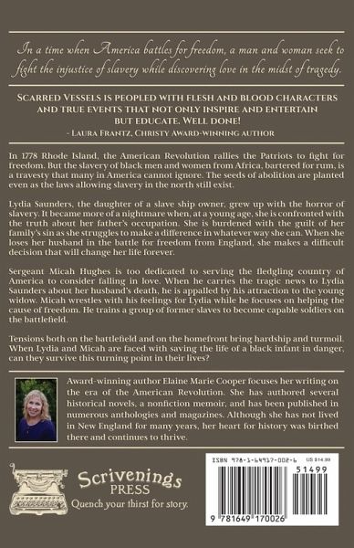 In 1778 Rhode Island, the American Revolution rallies the Patriots to fight for freedom. But the slavery of black men and women from Africa, bartered for rum, is a travesty that many in America cannot ignore. The seeds of abolition are planted even as the laws allowing slavery in the north still exist.Lydia Saunders, the daughter of a slave ship owner, grew up with the horror of slavery. It became more of a nightmare when, at a young age, she is confronted with the truth about her father's occupation. She is burdened with the guilt of her family's sin, as she struggles to make a difference in whatever way she can. When she loses her husband in the battle for freedom from England, she makes a difficult decision that will change her life forever. Sergeant Micah Hughes is too dedicated to serving the fledgling country of America to consider falling in love. When he carries the tragic news to Lydia Saunders about her husband's death, he is appalled by his attraction to the young widow. Micah wrestles with his feelings for Lydia while he tries to focus on helping the cause of freedom. He trains a group of former slaves to become capable soldiers on the battlefield. Tensions both on the battlefield and on the home front bring hardship and turmoil that threaten to endanger them all. When Lydia and Micah are faced with saving the life of a black infant in danger, can they survive this turning point in their lives?