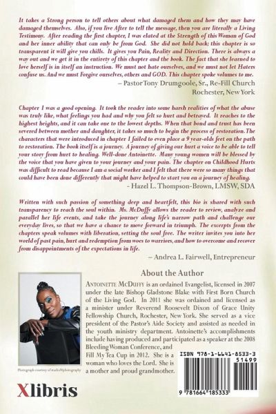 Here I sit, with pen in hand, writing for the 9 year-old girl who endured overwhelming heartache and pain many years ago. I write for myself, and every young child who has suffered at the hands of the ones they trusted to care for them, to raise them, to nurture them and most importantly to help them to dream. To dream of what their future could be. I write for the 9 year-old girl who remained captive in my body, captive in my mind, and captive in my heart and soul. She had no idea on how to start her story or how it would end; she just wanted to be free. All she could see and feel was childhood pain that shackled her feet and cuffed her hands and kept her bound to the open wounds of the past. Pain is all she knew and she has longed forever to be released from it. The battle that she fought was one riddled with questions: Why did this happen to me? Why did God choose me to go through this? Why did my mom fail to protect me? Did I do something to deserve this? Questions that remain unanswered to this day. But it's not the answers to these questions that set one on a journey of healing. It is the power to give voice to one's reality. The voice that gives instruction on how to free yourself from constant hurt and self-inflicted pain. In this book, I give you the voice that was lost or silenced. I invite you, my readers, to go with me on this journey from hurt to healing and forgiveness. When I began writing this book, my thoughts were that my experiences would provide healing to others. As my words started to flow and I began to relive my past, I realized that this was for me, for my own healing. I know there are many who can relate to my journey and that's unfortunate, but it's real. Is there anyone out there who can relate to trauma in his or her life? Your trauma is anything that has happened in your life that has created a disturbance. Maybe you lost a loved one, or were raped by someone you knew or a stranger. Perhaps you experienced a bad breakup with someone, or your parents divorced, or you personally went through a divorce or (PTSD) Post Traumatic Stress Disorder. Whatever caused you to become deeply wounded and separated from yourself, just know that you are not alone and help is just a whisper away. I had to make some serious decisions in my life that would make me or break me. Was I prepared to deal with my deep-rooted issues that stopped me from living life to the fullest through forgiveness? Or would I allow my past of being molested as a child, abused physically, mentally and psychologically as an adult and my own self-inflicted abusive behaviors continue to hinder me? I had experienced enough negativity in my life, so I decided to try something different - Believing in me.