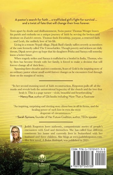 Torn apart by doubt and disillusionment, Swiss pastor Thomas Wenger leaves his parish and embarks on a unique journey of faith by serving the broken and destitute on Zurich's streets. Thomas finds friendship, purpose, a renewed faith ... and Leah, the unlikely love of his life.Living in a remote Nepali village, Dipak Badi's family suffers severely as members of the caste formerly called The Untouchables. Though poverty and sickness are daily threats, Dipak never gives up hope that his daughters Prisha and Saraya will someday know a better future. When tragedy strikes and Saraya is trafficked to a brothel in India, Thomas, who by then has become friends with her family, is forced to make a decision that will forever change all of their lives...Spanning three decades and two continents, Scars of Gold is the inspiring story of an ordinary pastor whose small world forever changes as he encounters God through those on the margins of society.