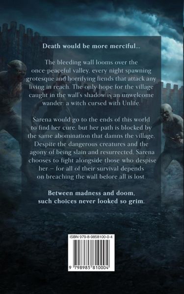 Death would be more merciful... The bleeding wall looms over the once-peaceful valley, every night spawning grotesque and horrifying fiends that attack any living in reach. The only hope for the village caught in the wall's shadow is an unwelcome wander: a witch cursed with Unlife. Sarena would go to the ends of this world to find her cure, but her path is blocked by the same abomination that damns the village. Despite the dangerous creatures and the agony of being slain and resurrected, Sarena chooses to fight alongside those who despise her--for all of their survival depends on breaching the wall before all is lost. Between madness and doom, such choices never looked so grim.