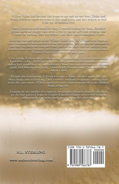 Willow Valley had become like home to me and my two boys, Dylan and Noah. Everyone knew everyone in this small town, and they helped us heal from our devastating loss. Once I knew my kids would be okay, I started looking for work. Bluebird Books hired me almost right away. I was to run the new kids program that Trinity was starting. That was where I met Zach and his daughter, Grace. Zach was the new owner of the Willow Valley Inn. He'd come in to return a book his daughter had borrowed from the program. We exchanged pleasantries and that was when the computer had gone down. Zach lost his patience, and that was when our pleasant conversation turned sour. I wasn't worried about it because I figured I'd never see him again. I was wrong. It turns out in a small town, everyone sees everyone almost daily, if not twice a day. At the grocery store, the gas station, the elementary school and as luck would have it, the bookstore. Soon, our conversations turn pleasant again, and without even trying, I find myself drawn to him. Then he asks me out on a date. Despite my reservations, I decided to take a chance on love again. But just when things start to look up, Zach's ex-wife suddenly reappears, causing chaos in his life once more. Which somehow causes chaos in mine when my children begin acting out. Leaning on one another for support, we navigate obstacles that life throws at us. As time passes I begin to wonder if another chance at love will bring us closer together or make each one of us run the other way?