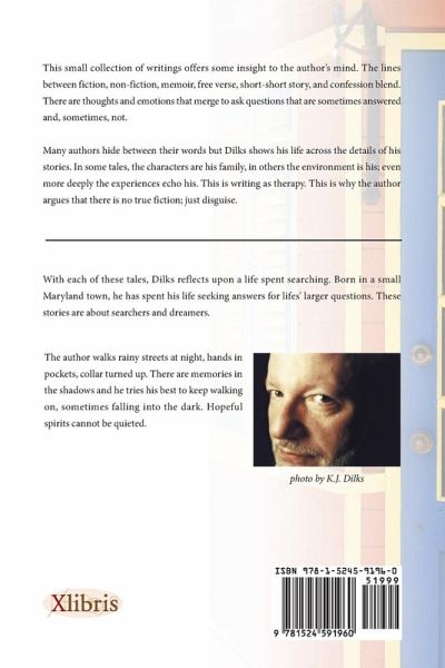 This small collection of writings offers some insight to the author's mind. The lines between fiction, non-fiction, memoir, free verse, short-short story, and confession blend. There are thoughts and emotions that merge to ask questions that are sometimes answered and, sometimes, not. Many authors hide between their words but Dilks shows his life across the details of his stories. In some tales, the characters are his family, in others the environment is his; even more deeply the experiences echo his. This is writing as therapy. This is why the author argues that there is no true fiction; just disguise.