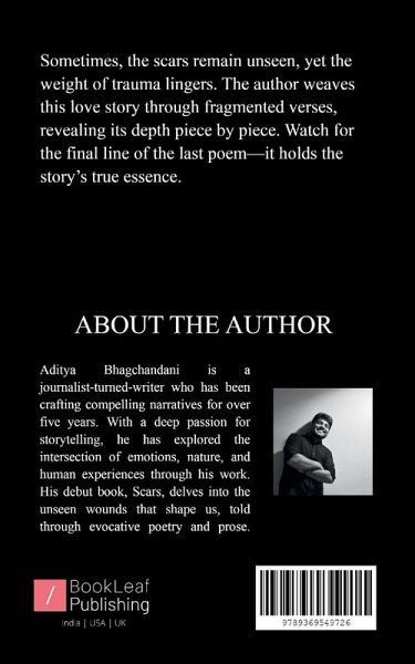 ""Scars"" is not just a collection of poems; it's a journey through love's most vulnerable moments-its beginnings, its struggles, its longing, and the echoes it leaves behind. Told through 21 interconnected poems, this book follows two lovers whose story remains unfinished. From their first meeting to their separation, from regret to unexpected reunion, ""Scars"" explores how love is shaped by time, trauma, and fate.