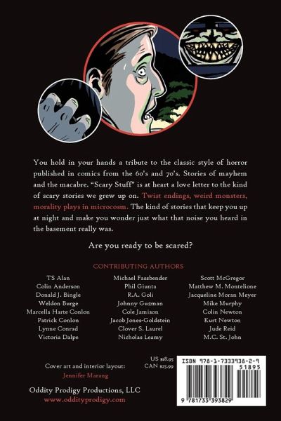 You hold in your hands a tribute to the classic style of horror published in comics from the 60's and 70's. Stories of mayhem and the macabre. "Scary Stuff" is at heart a love letter to the kind of scary stories we grew up on. Twist endings, weird monsters, morality plays in microcosm. The kind of stories that keep you up at night and make you wonder just what that noise you heard in the basement really was. Are you ready to be scared?