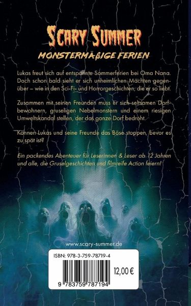 Lukas freut sich auf entspannte Sommerferien bei seiner Oma Nana. Doch schon bald sieht er sich unheimlichen Mächten gegenüber - wie in den Sci-Fi- und Horrorgeschichten, die er so liebt. Zusammen mit seinen Freunden muss er sich seltsamen Dorfbewohnern, gruseligen Nebelmonstern und einem riesigen Umweltskandal stellen, der das ganze Dorf bedroht. Können Lukas und seine Freunde das Böse stoppen, bevor es zu spät ist? Ein packendes Abenteuer für Leserinnen und Leser ab 12 Jahren und alle, die Gruselgeschichten und filmreife Action feiern!